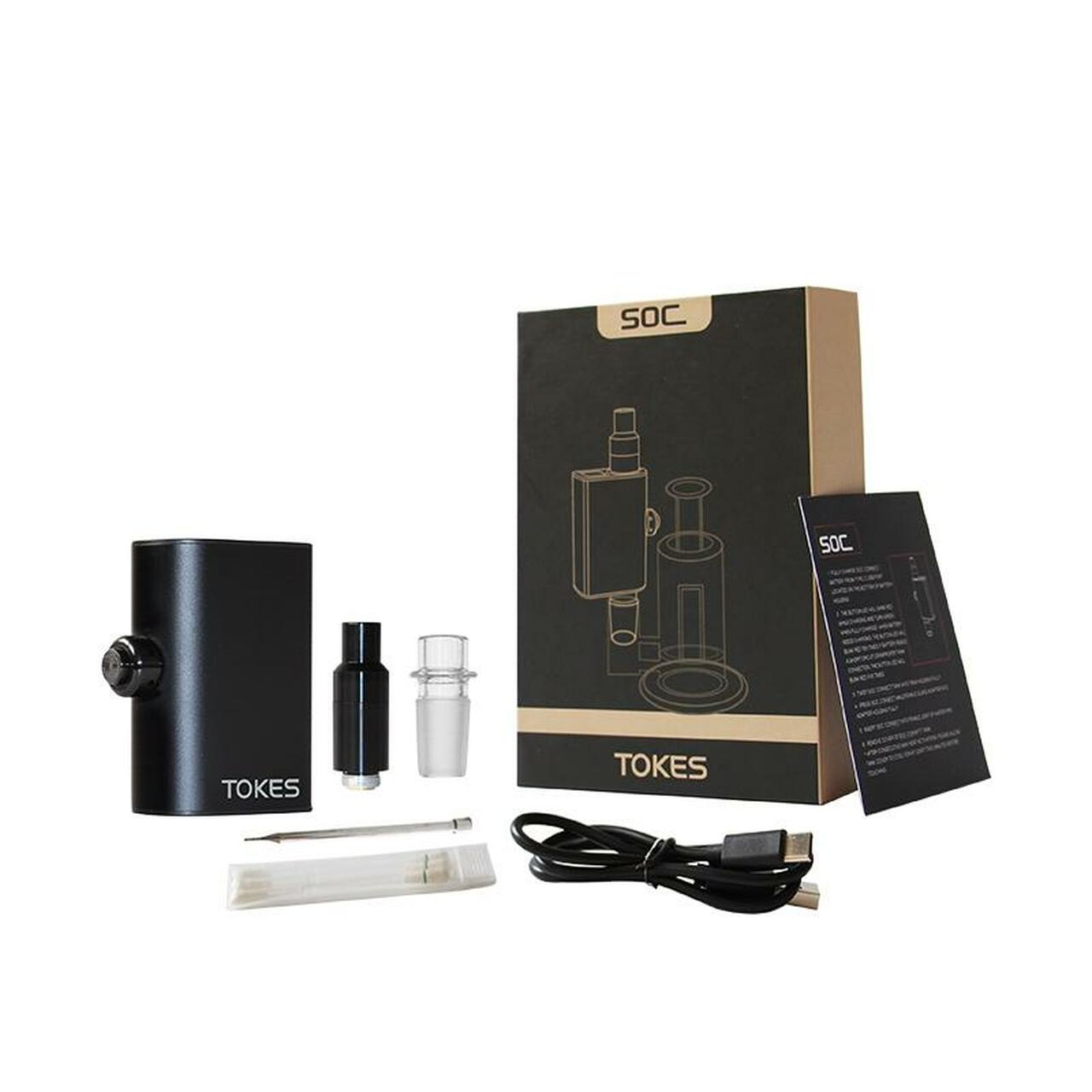 SOC Tokes Vaporizer is a dual-use wax pen and adapter featuring a 14mm glass male joint that makes this battery compatible with most water pipes. Select from 2 modes for wax or E-liquid. The latter contains an adjustable airflow creating a far more enjoyable experience smoking your concentrates with big vapor clouds and no burnout. Select from three temperature settings, whether on the go or sitting at home with your favorite dab rig with the SOC Tokes.